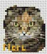 まるちゃんですが、28目×32目の小さいキーホルダーで表現するのになんと43色使ってます!目の周り、耳、鼻、ヒゲはさすがにバックステッチを使わなくては表現できませんでした。サイズが小さいとネコちゃんは柄を出すのが難しいですね(>_<) |