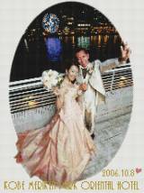 しかしこちらのお写真は、写真サイズをフルに使った構図なので切り抜く余裕がありませんでした。そこでドレスやご主人さまのピースしている手だけは飛び立たせて背景を楕円に型抜きしました。