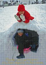 元のお写真は色補正、明るさの調整を行い、雪の陰影や質感、そしてお子さま達の表情等を出します。