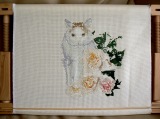 クロスステッチ歴は長いのですが、出産育児などで4年ほどお休みしていて、昨年からやっと余裕ができたので少しずつ小さいものから暇を見つけて作成していました。今回はお世話になってる叔母へ、母の日のプレゼント用に愛猫ももちゃんの図案をオーダーしました。
