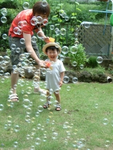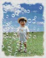 『緑ばかり多いので、背景の希望としては海(空)で鮮やかな感じに』というご希望で、それはよく理解できるお写真なのですが、問題はこの無数のしゃぼん玉から背景を抜くことでした(笑)