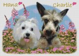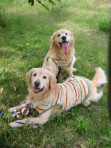 左側のハナちゃんは花柄を削除して身体の切れている部分を追加、右側のチャーリー君はかじっている縫いぐるみを削除してボディを合成、欠けている耳を追加してあります。