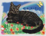 今回2作目で、今年1月に亡くなったチャチャ丸の図案(B5サイズとクッションの2種類)をお願いしました。