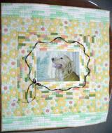 出来上がったポテを、額に入れてたのですが、陽だまりの中にいる感じにしたくて、キルトでかこんでみました。