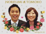 妹の結婚式に、手製のウェルカムボードを贈りたいと思い立ち笑顔のステキな2人を図案化していただきました。