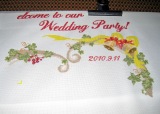 作成期日がある作品なので、背景は画像合成ではなく、色数が少なく刺しやすいモチーフを使用しています。 |