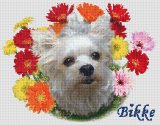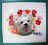 ある日、ネットで写真からキットを作って下さるというサイトを発見し、“これだ!”と思いました。家にいるかわいいヨークシャーテリアのビッケをぜひ図案化してもらいたいと思い、ぱるさんにお願いしました。