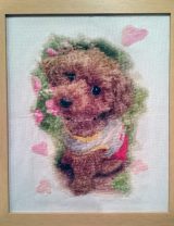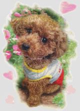 1日のうち刺繍ができる時間が限られているので、特に急いではいないのですが、モモの誕生日の5月24日位には出来あがるといいなぁと思っています。 |