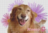 モモが今も私と息子の横に寄り添って笑ってくれているような、優しさいっぱいの図案です(^^♪