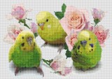 できあがりサイズがA4以下で、ということでしたので、あまり背景に凝ると肝心のセキセイインコさんたちが構図的に小さくなってしまうので、お花はアップです。(^^ゞ