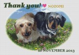 このフォトステッチが出来上がった直後に、小さい子(Mダックス)もモモが待っている場所へ旅立って行きました。
