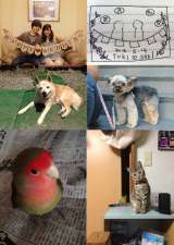 二人とも動物が好きで、お互いのペットを式に参加させたく、画像をたくさん合成していただきました。