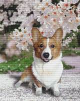 「毎朝毎夕散歩していた大きな公園で、春風に舞う桜吹雪の中、背中に花びらを受けて歩く姿が大好きでした。」とのことでしたので、このような桜吹雪の背景にしました。 |