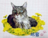 またイラストも鉛筆画なので線が細く、面で色をとらえるクロスステッチとしては苦手な分野です。今回は細い線だけの部分があまり無いので、綺麗に図案化できたと思います。 |