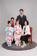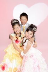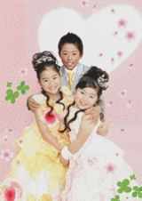 三人の図案のほうは、元々のお写真が写真やさんで撮った、完成された構図なので、あとはご希望の桜の花とクローバーを合成させて頂きました。 |