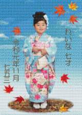 七五三のお着物の方は、やはり七五三の季節といえば、秋の紅葉のもみじとそれに似合う青空でお願いしました。(これは前回と同じ)