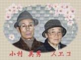 また背景はご両親が作成されていた、思い出の市松模様の畳表と、ご希望の桜の花も合成致しました。
