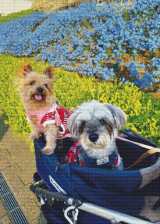 わんこは外にお散歩に行くことが多いので、いつものお散歩コースの風景や、今回の画像のように季節のお花とのお写真は、日常を切り取った何気ない構図が自然でいいですね♪ |