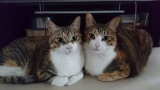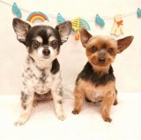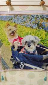 「左の子は白と黒の子で、右の子は茶色っぽく見えますがゴールドと黒です」とのことで、見比べてみますと別犬のようですね。(^^ゞ