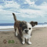 いつも散歩で行っている大好きな海をバックにした図案です。
