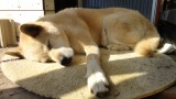 屋外で寝ているわんちゃんの身体に太陽の光が当たっていて、体に明るい部分と影になっている部分とコントラストがあります。これを全体的に自然な色合いに修整して統一できないか、というご希望でした。