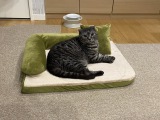 ソラちゃんは遠目ではほとんど黒が多い縞の猫ちゃんなのと、全体の構図に対してソラちゃん自身は小さめなので、ちょっと表情などは判りづらくなっています。