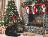 今回の構図は全体的にカラフルで、いかにも外国のクリスマスの雰囲気でのんびり暖炉の前にソラちゃんが居る、とても楽しい図案となっています。 |