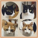 それぞれ猫ちゃん達のお顔アップで丸でトリミングし、猫の表情をはっきり刺したいとのご希望です。