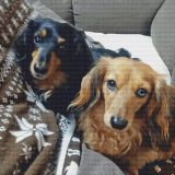 2匹で仲良く並んでいる写真がありましたので、図案をお願いしました。サイズなど的確なアドバイスをいただき、素敵な図案を作ってくださいました。