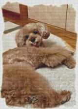 上の小さい画像ではわかりづらいですが、黒いワンコの左耳あたり、手前茶色いワンコの左耳あたりは影になって暗くなっているので、若干明るくして毛の流れ等を出しています。 |