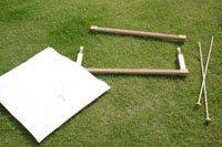 たるんでいる布を上部水平バーに巻きつけます。
