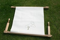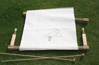 ※サイドアームの高さを調節して布を張るので、サイドアームより短く布を巻き取り過ぎないようにして下さい。 |