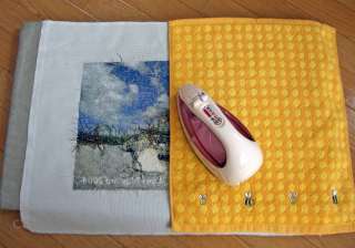 ●あて布をして、刺しゅうの裏からスチーム・アイロンをかけます。