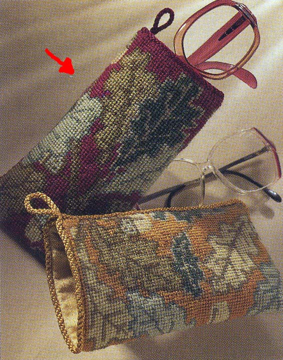 ■刺しゅう方法はクロスステッチではなく、糊のきいたコットンのキャンバスに、斜め片側だけのハーフ・クロスステッチとなります。