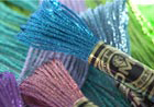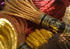 従来の金や銀のラメ糸に加え、宝石、アンティーク、パール、蛍光、夜光効果など多彩な色調と光沢で作品に光と立体感を与えます。