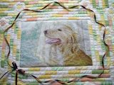 出来上がったポテを、額に入れてたのですが、陽だまりの中にいる感じにしたくて、キルトでかこんでみました。