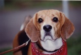 背景を削除し、赤いバンダナは途中で切れているので足りない部分は他のお写真から合成してあります。首輪とリードは削除しました。