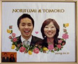 妹の結婚式に、手製のウェルカムボードを贈りたいと思い立ち笑顔のステキな2人を図案化していただきました。