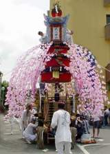 笠鉾を子供たちが街中を引き回すのが、毎年賑やかに行われます。