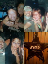 ご依頼は3人並べて楕円に型抜き、背景はオレンジ1色とのことでしたが、バイク乗りが集まるおしゃれなダーツバーの方へのプレゼントとのことですので、お店のロゴに雰囲気合わせて作ってみました。