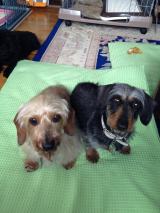 このフォトステッチが出来上がった直後に、小さい子(Mダックス)もモモが待っている場所へ旅立って行きました。