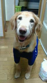 こちらは元のお写真で頭が少しと脚がかなりカットされていますので修正も厳しく、もうそのままのポーズで、背景だけご希望の芝生に変更いたしました。