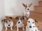 ジャックラッセル・テリアさん、見事に4匹、並んでいますね♪
