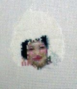 枠を乗せる脚付き台を手作りした所から台めたので、まだ1人目の顔だけです!