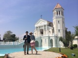 初めにお願いた写真は逆光であまり綺麗に出ませんでしたので、背景はそのままに人物だけを新たにウェルカムボードのために写真を撮りに行きました。