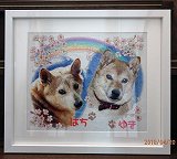 今回は、柴犬2匹の女の子なので、桜と虹があるデザイン希望で図案を作って頂きました。