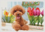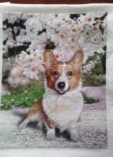 途中ケイも天国に逝ってしまい、悲しくて針を持てない時もありましたが、花に囲まれた愛犬達を早く見たいと思い、頑張りました。