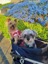 わんこは外にお散歩に行くことが多いので、いつものお散歩コースの風景や、今回の画像のように季節のお花とのお写真は、日常を切り取った何気ない構図が自然でいいですね♪ |