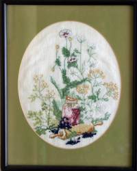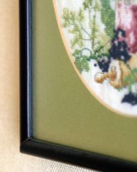 特に厚みのある作品の場合は額に入れるとガラス面に作品が押し付けられ、せっかくふっくら刺した刺しゅうが押しつぶれることがあります。 |