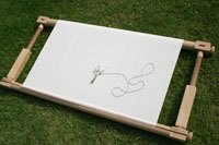 下部水平バーに布をはめ込みます。
